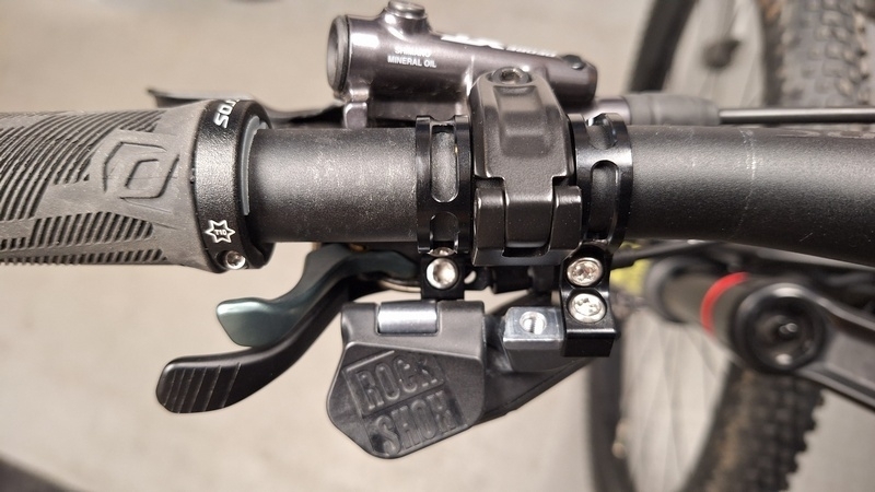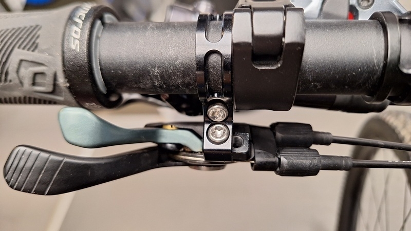 Od roku 2022 mají modely SCOTT nové páčky TwinLock, které jsou vždy pod řidítkem. Většinou jsem pomocí adaptéru připevněny přímo k přední brzdě. Pokud v tomto případě chceme na bike namotovat sedlovku RockShox Reverb AXS a zachovat stávají TwinLock, tak v první řadě se musí TwinLock dát na sólo objímku. Objímek pro uchycení je na trhu mnoho druhů a záleží na dobře zvoleném typu, aby se vše následně vešlo na požadované místo. Pak i ovládání sedlovky dáme na objímku a dle osobních požadavků nastavíme na řidítka. Ovladač AXS se v pohodě vejde hnedle vedle páčky TwinLock.