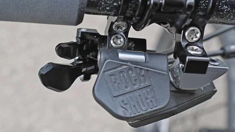 Pokud Vám snad nevyhovuje original páčka TwinLock, tak se to dá vyřešit konkurečním ovládáním od značky DT Swiss TRIGGER L2 Doublestage. Jedná se skvěle zpracovanou páčku, které má mnoho možností nastavení. Je oproti originální páčce mnohem menší, takže se krásně schová za ovladač sedlovky. Namotování jsme opět provedli pomocí samostatných objímek, což sebou přináší i více možností při nastavení finální pozice.