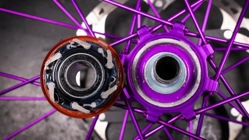 Pro systém přímých špic má Nine Industry i speciálně navržené náby, které se samozřejmě točí na ložiskách (přední nába čtyři a zadní má dokonce šest). Náboje Hydra jsou navíc unikátní i svým oříškem neboli volnoběžkou. Ořech totiž disponuje šesticí praporků se zdvojenými zuby, které zabírají na střídačku. To znamená je v nábě celkem 120 styčných bodů na jedno otočení kola. Navíc k demontáži ořechu nepotřebujete žádné speciální nářadí. A tento systém má speciální zvuk, který nemá žádná jiná náb, takže na kole ani nepotřebujete mít zvonek.