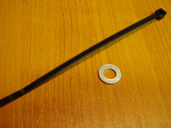 S nástupem kotoučovek do světa MTB vystal i problém, kterak upevnit hadičky kotoučovém na rám či vidlici. A tak se rázem vyrojilo i spousta způsobů a úchytek, jimiž provést uchycení vedení hadiček. Výrobci doplňků pro horská kola tak nabízí různé varianty - viz foto 1. My však s oblibou používáme tu nejlevnější variantu, která přijde asi na jednu korunu českou. Tuto vychytávku tvoří obyčejný elektrikářský stahovací pásek a jedna obyčejná podložka. Díky těmto dvou ingrediencím lze jednoduše vytvořit plně funkční úchytku bovdenu či brzdové hadičky. Nejprve vezmeme pásek a prostrčíme jej podložkou. Následně obtočíme pásek okolo hadičky či bovdenu a opět ho prostrčíme podložkou. Pak už stačí vybrat místo, kam se stahovací pásek připevní. Zatáhneme, čímž se stáhne sevření okolo podložky a spolehlivý úchyt je hotov.