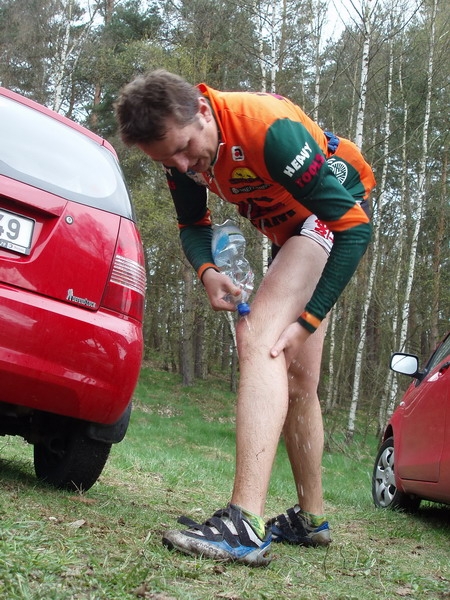 Každý bajker po absolvování závodu, ve kterém není nouze o blátivé úseky, má strašnou touhu se po dojetí patřičně zkulturnit,aby se mohl jako člověk odebrat do hospůdky na gábl. Za tímto účelem osobní očisty někteří sebou vozí i lavórek nebo kanistr s vodou. Jenže, co když nic takového sebou nemáte a sprchy nejsou k dispozici? Takovýto problém se dá hravě zvládnout třebas použitím pet lahve s vodou. Do víčka stačí udělat nůžkami dírku a poté pet láhev otočil upraveným uzávěrem dolů a zmáčknouti. Tím si vytvoří proud Dobré vody, která Vám pomožea zušlechtit Vaše vysportované tělo. Pozn.- Nejvíce si dejte však záležet na nožkách, neb i bajker se řídí heslem velkého Čecha Járy Cimrmana ,, Do hospody s umytejma nohama,,