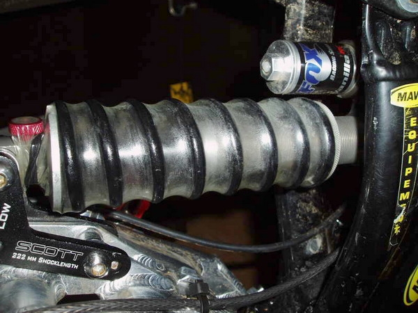Občas, hlavně po vydatných děštích se stává, že všude je moře bláta.Tuto nevábnou hmotu nemá jistě nikdo v oblibě ať už se jedná o crossaře či o sjezdaře. Ti druzí už vyrážejí na DH tratě a tak by se jim možná hodila následující vychytávka. Tou je využití pánské ochrany neboli prezervativu na tlumič celoodpruženého kola, jenž má zabránit případnému poškození těsnění tlumící jednotky pod přívalem bahýnka. Stačí jen navléknout tlumič do latexového prostředku a na druhé straně u štelovánu jej zajistit elektrikářskou elastickou páskou. Tlumič se pak nazpátek nasadí do rámu. Díky neskutečné odolnosti prezervativu je tak pístnice tlumiče neustále v čistotě a okolní bláto se na ní jen tak nedostane.