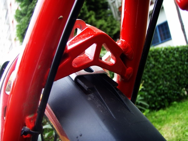 Nedávné letní dny připomínaly spíše podzim a tak vytrvalé deště mě donutili se prudce zamyslet a vykoumat, kterak namontovat zadní blatník na rám, jenž nemá pro tento účel nemá úchyt. Modely SCOTT Scale (mám na mysli rámy z matroše Alloy) mají totiž estetickou lahůdku, kterou je moc pěkně propracovaný můstek zadní stavby. Bohužel v něm chybí potřebný otvor pro šroub na upevnění držáku pro blatník. Mohl jsem sice použít blatník na sedlovku, leč dobře vím, že čím delší ochrana proti loužím je, tím je účinnější a proto jsem zvolit dlouhý plastový. Nakonec jsem využil staré podkovy neboli booster, jenž se používala v dobách dřívějších, aby se snížilo roztahování zadních vidlice. Na tento prastarý komponent jsem namontoval úchyt na blatník a poté podkovu připevnil imbusy do otvorů po pilotech na čepy pro ráfkové brzdy. Pak už jsem jen nasunul blatník. Ten skvěle drží a svědomitě mi chrání záda před vodou při průjezdu louží. Případná demontáž podkovy s držákem je pak otázkou pár minut.